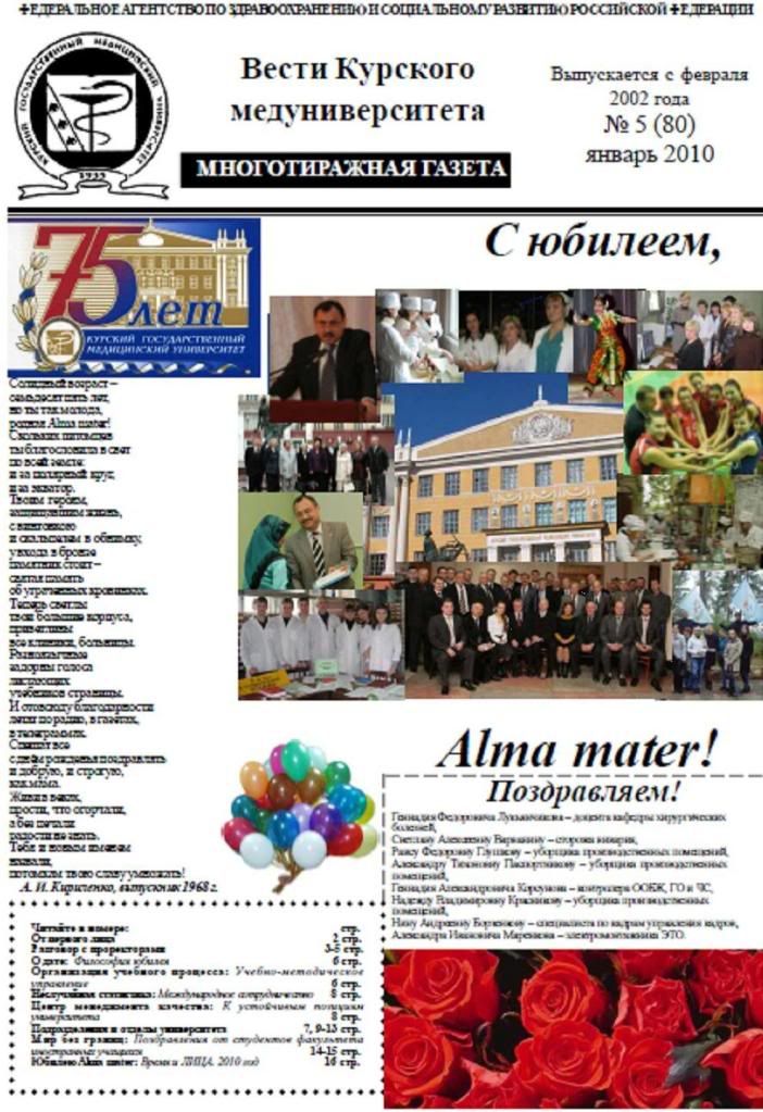 Kursk State Medical University's 75 year anniversary - Rector's Message -